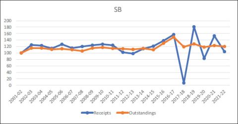 Figure 1. Receipts and Outstandings under Post Office Saving Account (SB).