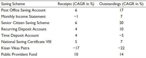 Table 1. Trend Analysis of Receipts with Post Office Saving Schemes.