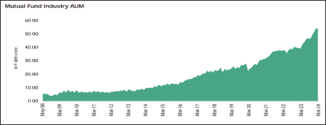 53.40 lakh crore in March 2024. This significant growth reflects a shift in investor behavior and the increasing adoption of SIPs and digital platforms, underscoring the impact of fintech innovations on the mutual fund landscape. Some of the factors driving expansion include increased retail involvement, greater digital use, financial knowledge, disposable incomes, and legislative reforms that encourage competition.